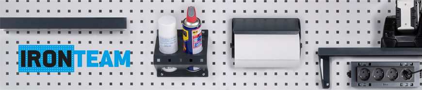 In order to optimally organise all your necessary work equipment, Fami has devised Iron Team, an extensive range of accessories for perforated wall panels that will keep your company tidy and efficient. With our perforated wall panel accessories, every single spray can, case, cable or silicone cartridge has its own place so that you can have everything within reach and work safely.