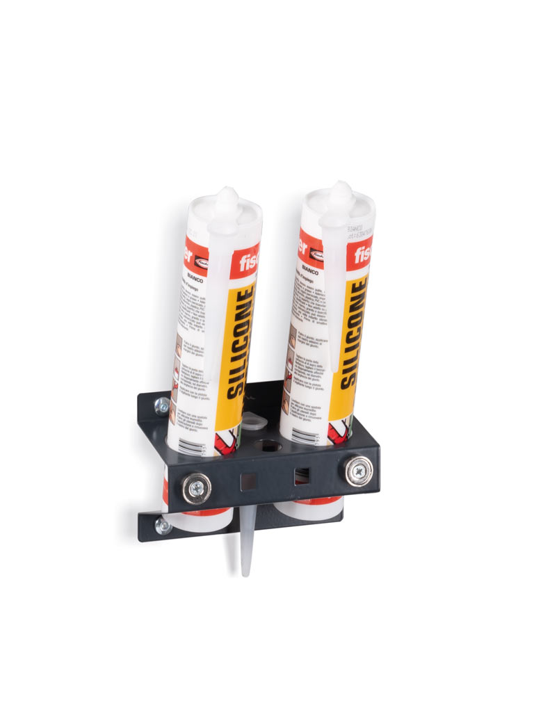 The silicone holder consists of an inclined frame with two holes for arranging the various silicone cartridges neatly and safely.