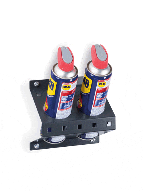 There are two types of spray can holders: perforated spray can holders with two slots or spray can holders with a pocket which can house up to 6 spray cans.
